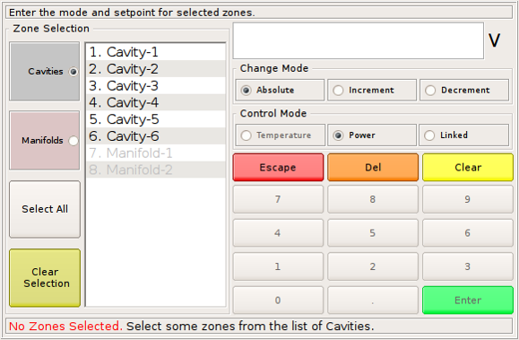 power-mode, the setpoint is entered as a voltage (cavities) or percentage (manifolds). With