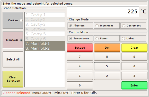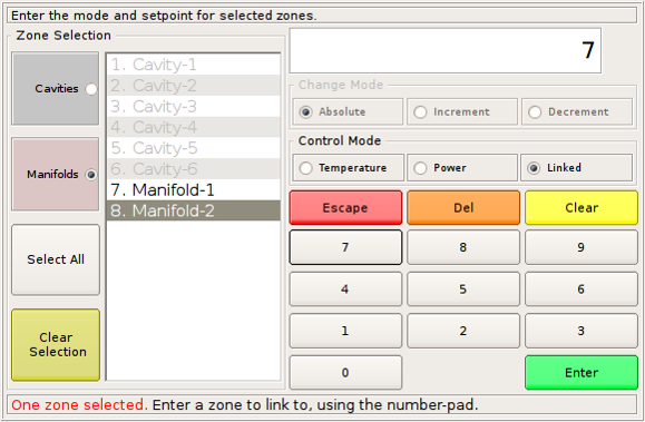 side to switch between cavities and manifolds, or select all zones of the current type, or
