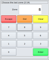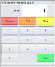 Add IndexThis function can only be accessed by a Supervisor. Press this button to add a symbol / index number combination to multiple zones. You will be asked to enter the zone number of the first zone you want to edit, followed by the zone number of the last zone you want to change. Then you will be asked for the first index value and the separator symbol to use. The same separator symbol is added to the names of all the zones you selected, but the index number increments by one per zone.