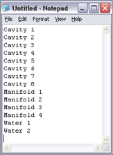 Import NamesThis function can only be accessed by a Supervisor. This is probably the easiest way to edit and change names, especially when the naming scheme is quite complicated. Prepare a simple text file on a desktop computer, save the file to a USB drive and insert the USB drive into the top-box USB port on the controller. Then select this option. ![]() Each line of the name file should contain the zone name. One zone name per line. This is an example name file prepared on a PC for an 8 cavity, 4 manifold, 2 water-zone controller. |
